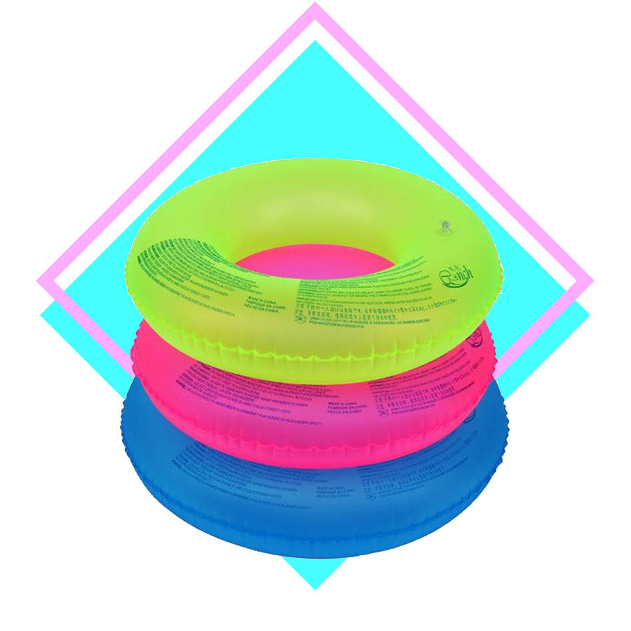 Retrouve la classique des bouées rondes gonflables dans son format fluo. Bleu, rose ou verte ? Laisse le destin décider du flotteur pour la saison chaude.