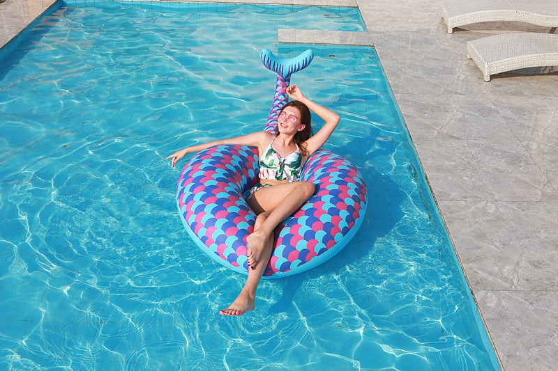 Si tu cherches l'accessoire de piscine et de plage ultime, regarde ce flotteur queue de sirène ! Majestueux et amusant, ce flotteur sera ton meilleur ami pendant les vacances d'été. Immersion au cœur du royaume des sirènes garantie ! Fait de Vinyle résistant, cette bouée te tiendra au frais tout l'été, n'aie pas peur de l'exposer et soleil ! N'oublie pas ton maillot de bain et éclabousse tes amis lors de pool party endiablée !