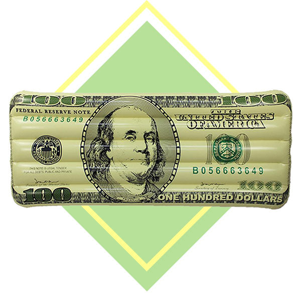 Tout t'est proposé chez Bouées Gonflables® notre catalogue est immense, on y trouve de tout jusqu'à un matelas gonflable pour piscine en forme de billet de Dollar Américain !